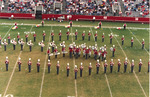 The Jacksonville State University Marching Southerners perform on the field during a 1993 football game performance in the Paul Snow Stadium in Jacksonville, AL. The band was under the direction of Dr. Scott McBride and the field direction of drum majors Keith Casey and Marcus LeGear. (circa Fall 1993)