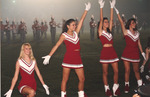 The Jacksonville State University Marching Southerners perform during a Fall 1993 performance, possibly a band exhibition performance. The band was under the direction of Dr. Scott McBride and the field direction of drum majors Keith Casey and Marcus LeGear. (circa Fall 1993)