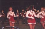 The Jacksonville State University Marching Southerners perform during a Fall 1993 performance, possibly a band exhibition performance. The band was under the direction of Dr. Scott McBride and the field direction of drum majors Keith Casey and Marcus LeGear. (circa Fall 1993)