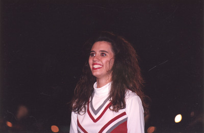 The Jacksonville State University Marching Southerners perform during a Fall 1993 performance, possibly a band exhibition performance. The band was under the direction of Dr. Scott McBride and the field direction of drum majors Keith Casey and Marcus LeGear. (circa Fall 1993)