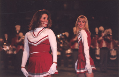 The Jacksonville State University Marching Southerners perform during a Fall 1993 performance, possibly a band exhibition performance. The band was under the direction of Dr. Scott McBride and the field direction of drum majors Keith Casey and Marcus LeGear. (circa Fall 1993)