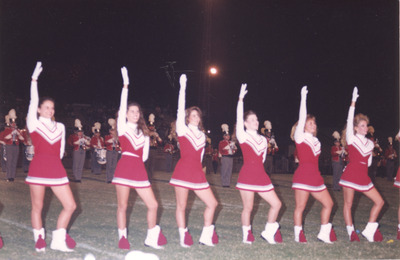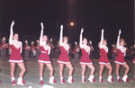 The Jacksonville State University Marching Southerners perform during a Fall 1993 performance, possibly a band exhibition performance. The band was under the direction of Dr. Scott McBride and the field direction of drum majors Keith Casey and Marcus LeGear. (circa Fall 1993)