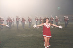 The Jacksonville State University Marching Southerners perform during a Fall 1993 performance, possibly a band exhibition performance. The band was under the direction of Dr. Scott McBride and the field direction of drum majors Keith Casey and Marcus LeGear. (circa Fall 1993)