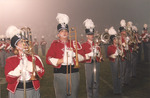The Jacksonville State University Marching Southerners perform during a Fall 1993 performance, possibly a band exhibition performance. The band was under the direction of Dr. Scott McBride and the field direction of drum majors Keith Casey and Marcus LeGear. (circa Fall 1993)