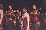 The Jacksonville State University Marching Southerners perform during a Fall 1993 performance, possibly a band exhibition performance. The band was under the direction of Dr. Scott McBride and the field direction of drum majors Keith Casey and Marcus LeGear. (circa Fall 1993)