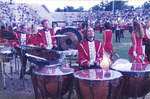The Jacksonville State University Marching Southerners and Ballerinas perform during a Fall 1995 performance, possibly a football game held in the Paul Snow Stadium in Jacksonville, AL. The 1995 show opener was "Carmina Burana," the ballerina tune was "Lulu's Back in Town," the ballad was "Simple Song at Sunrise," and the closer was "Malaguena." The band was under the direction of Kenneth G. Bodiford. (circa October 1995)