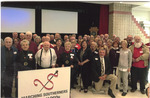 The Southerners Reunion dinner was held November 22, 2019 in the Leone Cole Auditorium at Jacksonville State University. Shown alumni attendees gather behind a sign.