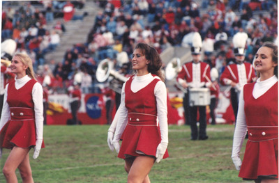 The Jacksonville State University Marching Southerners and Ballerinas perform on the football field during a circa 1998 performance. The band was under the direction of Kenneth G. Bodiford. (circa 1998 or 1999)