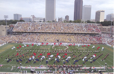 The Jacksonville State University Marching Southerners perform in the Bobby Dodd Stadium at Georgia Tech in Atlanta, Georgia during a Fall 2009 performance. The 2009 show title was "Of Thee I Sing." Opener was "Esprit de Corps," the ballerina tune was "Boogie Woogie Bugle Boy," the ballad was "Requiem for a Soldier", and the closer was "America the Beautiful." The band was under the direction of Kenneth G. Bodiford.