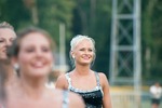 The Jacksonville State University Marching Southerners perform during a Fall 2000 performance, possibly a band exhibition performance at Tuscaloosa County High School in Northport, AL. The 2000 show title was "A Night in Birdland." Opener was "Birdland," the ballerina tune was "Night in Tunisia/Harlem Nocturne," and the closer was "Strawberry Soup." The band was under the direction of Kenneth G. Bodiford. Shown are ballerinas. (before October 2000)
