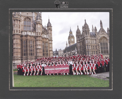 On January 1, 2012 the Jacksonville State University Marching Southerners led the London New Year's Day Parade. The band was under the direction of Kenneth G. Bodiford. Head drum major was Daniel Marshall. Band members in uniform stand pose outside in front of the Houses of Parliament and Big Ben.