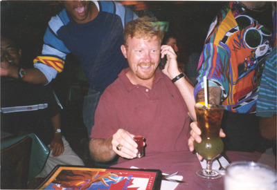 Kenneth G. Bodiford served as the director of Spirit Drum and Bugle Corps from 2001-2007. Shown he receives a drink from a server at a Planet Hollywood restaurant. (circa August 14, 2001)