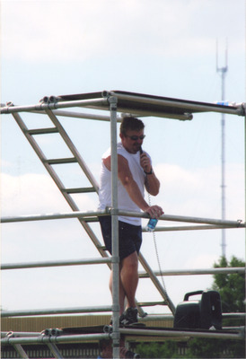 Kenneth G. Bodiford served as the director of Spirit Drum and Bugle Corps from 2001-2007. Shown he stands outside on scaffolding during a rehearsal. (circa August 16, 2006)