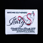 This embroidered uniform patch was designed by Jesse Stevens for the 2019 Marching Southerners performance in the annual World Peace Day Parade at the Vatican in Rome, Italy.