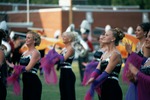 The Jacksonville State University Marching Southerners perform during a Fall 2000 performance, possibly a band exhibition performance at Tuscaloosa County High School in Northport, AL. The 2000 show title was "A Night in Birdland." Opener was "Birdland," the ballerina tune was "Night in Tunisia/Harlem Nocturne," and the closer was "Strawberry Soup." The band was under the direction of Kenneth G. Bodiford. (before October 2000)