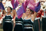 The Jacksonville State University Marching Southerners perform during a Fall 2000 performance, possibly a band exhibition performance at Tuscaloosa County High School in Northport, AL. The 2000 show title was "A Night in Birdland." Opener was "Birdland," the ballerina tune was "Night in Tunisia/Harlem Nocturne," and the closer was "Strawberry Soup." The band was under the direction of Kenneth G. Bodiford. Shown are ballerinas. (before October 2000)