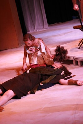 Pictured: Eric Wilcox, Pamela (Shirley) Lawrence; Performed: 15-18 Jan 2009; Wolfgang Amadeus Mozart's Cosi fan tutte was directed by Nathan Wight with assistant direction by Teresa Stricklin. The conductor was Dr. Keith Whitlock, technical director was Josh Whitt, lighting designers were Alex Becker and Andrew Becker, costume designer was Chaney Billips, assistant costumer was Lynn Luke, coach and consultant was Jennie Wall, supertitles was Dani Jones, stage managers were Peter Wilder and Michael Ervin, house manager was Cody Harrell, rehearsal accompanists were Steven Diblasi and Gena Vineyard, publicity was Bill Sparrowhawk, poster and program art were Grant Allen, photographer was Gaye Phillips.