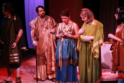 Pictured: Eric Wilcox, Estefania Cuevas, Juliet Jackson, Pamela (Shirley) Lawrence; Performed: 15-18 Jan 2009; Wolfgang Amadeus Mozart's Cosi fan tutte was directed by Nathan Wight with assistant direction by Teresa Stricklin. The conductor was Dr. Keith Whitlock, technical director was Josh Whitt, lighting designers were Alex Becker and Andrew Becker, costume designer was Chaney Billips, assistant costumer was Lynn Luke, coach and consultant was Jennie Wall, supertitles was Dani Jones, stage managers were Peter Wilder and Michael Ervin, house manager was Cody Harrell, rehearsal accompanists were Steven Diblasi and Gena Vineyard, publicity was Bill Sparrowhawk, poster and program art were Grant Allen, photographer was Gaye Phillips.