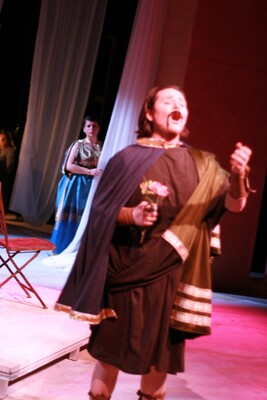 Pictured: Estefania Cuevas, Eric Wilcox; Performed: 15-18 Jan 2009; Wolfgang Amadeus Mozart's Cosi fan tutte was directed by Nathan Wight with assistant direction by Teresa Stricklin. The conductor was Dr. Keith Whitlock, technical director was Josh Whitt, lighting designers were Alex Becker and Andrew Becker, costume designer was Chaney Billips, assistant costumer was Lynn Luke, coach and consultant was Jennie Wall, supertitles was Dani Jones, stage managers were Peter Wilder and Michael Ervin, house manager was Cody Harrell, rehearsal accompanists were Steven Diblasi and Gena Vineyard, publicity was Bill Sparrowhawk, poster and program art were Grant Allen, photographer was Gaye Phillips.