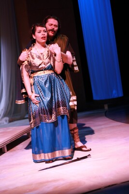 Pictured: Estefania Cuevas, Eric Wilcox; Performed: 15-18 Jan 2009; Wolfgang Amadeus Mozart's Cosi fan tutte was directed by Nathan Wight with assistant direction by Teresa Stricklin. The conductor was Dr. Keith Whitlock, technical director was Josh Whitt, lighting designers were Alex Becker and Andrew Becker, costume designer was Chaney Billips, assistant costumer was Lynn Luke, coach and consultant was Jennie Wall, supertitles was Dani Jones, stage managers were Peter Wilder and Michael Ervin, house manager was Cody Harrell, rehearsal accompanists were Steven Diblasi and Gena Vineyard, publicity was Bill Sparrowhawk, poster and program art were Grant Allen, photographer was Gaye Phillips.