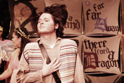Pictured: Eric Wilcox; Performed: 11-16 Jan 2010; Sterling Tinsley and Kate Pogue's St. George and the Dragon was directed by Dr. Nathan Wight. Music consultant was Jeremy Stovall, conductor was Taylor Cash, rehearsal accompanists were Kathy Gregory and Meg Griffin, lighting designer was Dr. Nathan Wight, costume designer was Chaney Billips, costume assistant was Lynn Luke, technical assistant was Dr. Dani Jones, house manager was Tammy Hayes, publicity coordinator was Teresa Stricklin, publicity volunteer was Bill Sparrowhawk, poster and program art was Jason Wright, videographer was Keith Thomas.