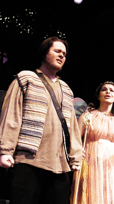 Pictured: Eric Wilcox, Estefania Cuevas; Performed: 11-16 Jan 2010; Sterling Tinsley and Kate Pogue's St. George and the Dragon was directed by Dr. Nathan Wight. Music consultant was Jeremy Stovall, conductor was Taylor Cash, rehearsal accompanists were Kathy Gregory and Meg Griffin, lighting designer was Dr. Nathan Wight, costume designer was Chaney Billips, costume assistant was Lynn Luke, technical assistant was Dr. Dani Jones, house manager was Tammy Hayes, publicity coordinator was Teresa Stricklin, publicity volunteer was Bill Sparrowhawk, poster and program art was Jason Wright, videographer was Keith Thomas.