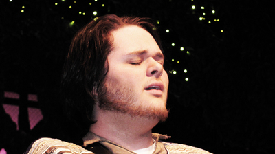 Pictured: Eric Wilcox; Performed: 11-16 Jan 2010; Sterling Tinsley and Kate Pogue's St. George and the Dragon was directed by Dr. Nathan Wight. Music consultant was Jeremy Stovall, conductor was Taylor Cash, rehearsal accompanists were Kathy Gregory and Meg Griffin, lighting designer was Dr. Nathan Wight, costume designer was Chaney Billips, costume assistant was Lynn Luke, technical assistant was Dr. Dani Jones, house manager was Tammy Hayes, publicity coordinator was Teresa Stricklin, publicity volunteer was Bill Sparrowhawk, poster and program art was Jason Wright, videographer was Keith Thomas.