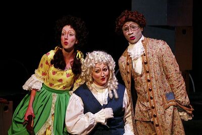 Pictured: Pamela Shirley (Lawrence), Kristina Shetter; Performed: 27-28 May 2005; Wolfgang Amadeus Mozart's Lunatics and Lovers was directed by Nathan Wight with assistant direction by Teresa Stricklin. Sharon McCoy-Morgan was costume designer.