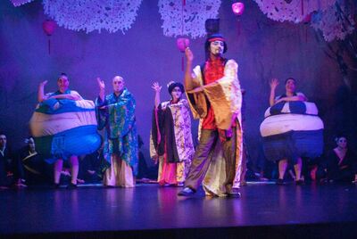 Performed: 7-9 Jun 2013; The Mikado was directed by Dr. Nathan Wight, conducted by Ken Bodiford, chorusmaster was Kaylon Gilley, technical director was Nathan Wight, lighting designer was John Longshore, choreographer was Alison Woodward, costumer was Chaney Billips, assistant costumer was Lynn Luke, scenic design consultant was Jennifer Ivey, scenic artist was Carlton Ward, technical consultant was David Keefer, stage manager was April Dorries, assistant stage manager was Kevin Ward, director of publicity was Teresa Stricklin.