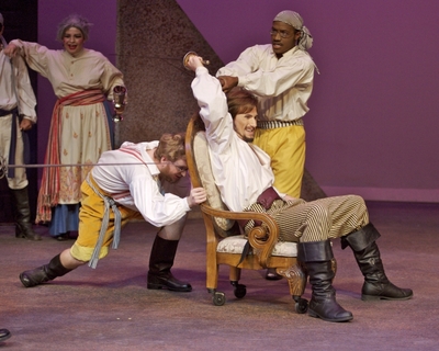 Pictured: Matt Headley, Peter Wilder, Estefania Cuevas; Performed: 18-27 May 2007; Gilbert and Sullivan's The Pirate of Penzance was directed and conducted by Nathan Wight. Assistant director was Teresa Stricklin, pianist was Wendy Faughn, technical director was Darryl Pauley, lighting designer was David Keefer, costume designer was Chaney Billips, wig master/fight captain/assistant stage manager was Michael Turner, choreographer was Holly Smith with assistant choreography by Julie Batson and fight choreography by Jason Skinner, chorus master was Juliet Jackson, stage manager was Anthony Moore.