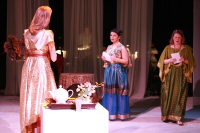 Pictured: Pamela (Shirley) Lawrence, Estefania Cuevas, Juliet Jackson; Performed: 15-18 Jan 2009; Wolfgang Amadeus Mozart's Cosi fan tutte was directed by Nathan Wight with assistant direction by Teresa Stricklin. The conductor was Dr. Keith Whitlock, technical director was Josh Whitt, lighting designers were Alex Becker and Andrew Becker, costume designer was Chaney Billips, assistant costumer was Lynn Luke, coach and consultant was Jennie Wall, supertitles was Dani Jones, stage managers were Peter Wilder and Michael Ervin, house manager was Cody Harrell, rehearsal accompanists were Steven Diblasi and Gena Vineyard, publicity was Bill Sparrowhawk, poster and program art were Grant Allen, photographer was Gaye Phillips.